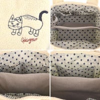 表面変化のある同色の3素材を組み合わせてパッチワークしました。あたたかなボア生地には手作り感のあるご近所さん刺しゅうが引き立ち、よりいっそうあたたかさが増します。
