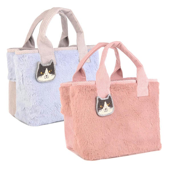 パウダーカラーのフェイクファーをベースに異素材を組み合わせたバッグたちです。なめらかな毛足は、まるでうちの子(猫)の毛並みのような肌触り。ずーっとなでなでしたくなる、無限なでなでバッグです。全てになごなごさんワッペンブローチのおまけ付き。
