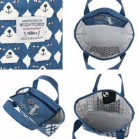 特 徴 :横長タイプのコンパクトなトートバッグです。吊り下げタイプの内ポケットは、バッグの中身を隠すことができる蓋になっています。ポケットの蓋にはミチョロがひょっこり付いています。