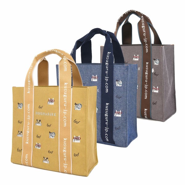 特 徴 :ロゴがプリントされた持ち手テープがアクセント。真面目顔の四角いトートバッグは小ぶりですが存在感があり、しっかりものなので自立します。