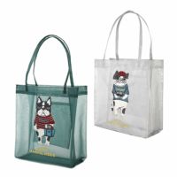 ハリのあるメッシュ素材。中身が透けて見えるので、中に何を入れようか考えるのも楽しくなるアイテム。