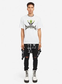 コメント :フロントにエイリアン、バックにエイリアン放尿プリントが入った T-SHIRTです。高品質のインクを使用してプリントしています。全てカナダのモントリオールで手作りのため、個々にわずかな違いが生じています。1枚ずつハンドメイドにより加工をしているアーティストブランドです。このTシャツはボックスTEEでオーバーサイズです。 Tシャツを裏返して手洗いして、平らにして乾かしてください。