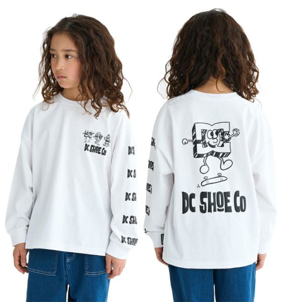 コメント:キックフリップをきめるDCスターロゴのキャラクターがキャッチーな長袖Tシャツ。膨らみのある発泡プリントを採用し、ユニークなグラフィティアートをより印象的に仕上げました。生地には肌触りの柔らかなコットンジャージー素材を使用。ゆったりとしたシルエットが、コーディネートに程よいルーズ感を加えます。親子でのリンクコーデにも取り入れやすいアイテム。