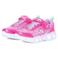 コメント:楽しいきらめきを放つ、スケッチャーズ ハート ライツ - ブギー ラブ。キラキラ輝くハートプリントの合成素材のアッパー、固定式ストレッチレースとアダプティブクロージャー、さらにハートがきらめく3Dスカルプテッドライトアップミッドソールが特長のカラフルなスニーカー。