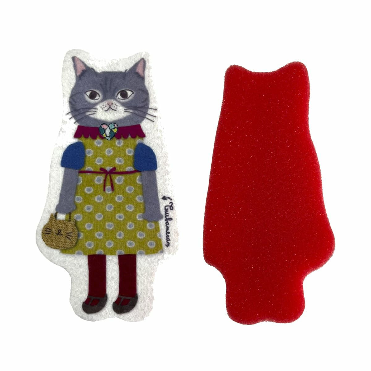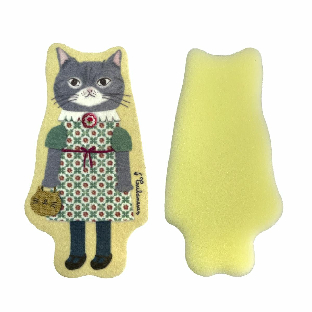 エプロン レディース フリーサイズ ふわふわ あたたかい 保育士 モケモケット リブカッポウ 割烹着 ネコまるけ マチルダさん 25-8655 -8656 クスグルジャパン