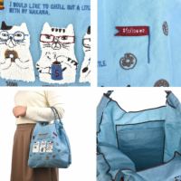 品 名 :撥水加工刺しゅうワッシャーバッグ ネコまるけ柄 Mサイズ