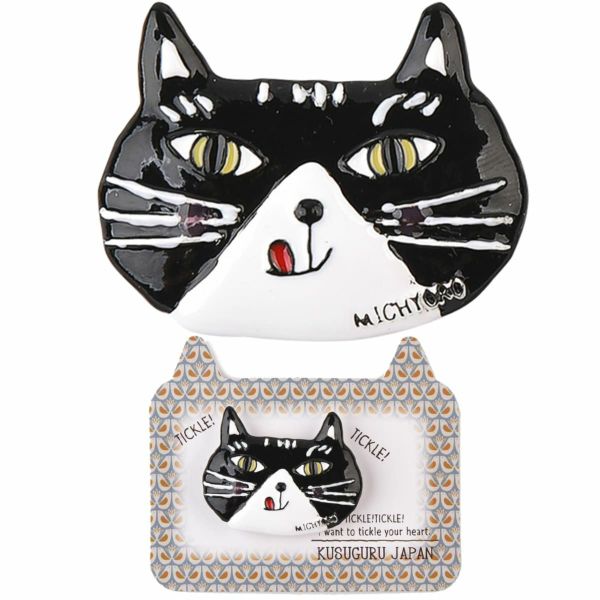 ブローチ おしゃれ 猫 キャラ かわいい 合金製 親指サイズのブローチ ミチョロ ブラック 24-7583クスグルジャパン ブローチ ミチョロ