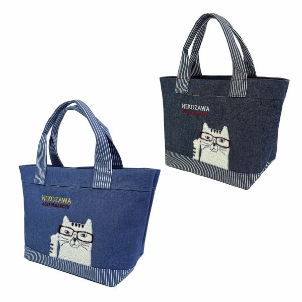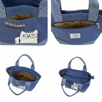 4. 50%OFF トートバッグ かわいい レディース ネコまるけ デニム調&ヒッコリー ミニバッグ 25-10020 クスグル KUSUGURU トートバッグ レディース 2025年新作