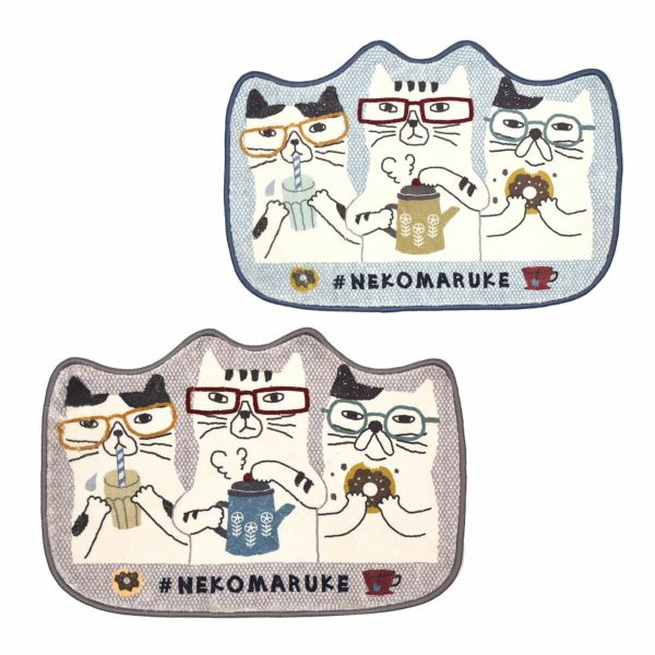 コメント:ほっこりしているカフェタイムのネコまるけたちのマットです。