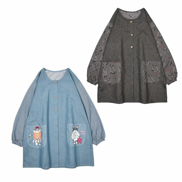 4. 50%OFF 割烹着 おしゃれ 保育士 カッポウ アラカルト 25AW アニマルモード柄 ネコ柄 前比翼釦あきスモック 25-8553 クスグル 割烹着 レディース 2025年秋冬 新作