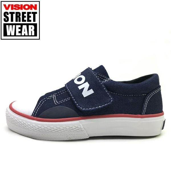 コメント: VISIONの代表作でもあるCANVAS HI をジュニアにサイズダウン。ストリートスタイルを取り入れたい生意気なKIDSに。内側にジッパーを付けているので、ハイカットでも着脱は簡単です。通学にもスポーツにもOK!オススメのスニーカーです。
