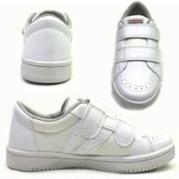 コメント: 人工皮革とキャンバスのコンビがかっこいい。2本のベルクロが調整機能を高めて足のフィット感をあげてスポーツする足元をささえます。デザインもストリートスタイルを取り入れたキッズ向けスニーカーです。