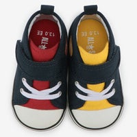 スタイリングしやすいベーシックなアッパーカラーに左右異なる明るいポイントカラーをタンとインソールに差したデザイン。しなやかなラバーの踵部分にはボードを内蔵し、足の曲がる位置でしっかり屈曲するソール設計。脱ぎ履きしやすいワンベルト仕様。・足先を自由に動かせるゆったりとしたルーミーラスト・足の負担を軽減するしなやかなソール設計・踵部分にボードを内蔵し、足の曲がる位置でしっかり屈曲するソール設計・タンが大きく開き、脱ぎ履きしやすい設計・柔らかいE.V.A.素材で、クッション性に優れた抗菌リムーバブルインソール・持ちやすく、脱ぎ履きしやすいビッグタブ・内側からシューズと足元をやさしくフィットする厚みのあるフォーム