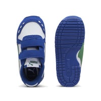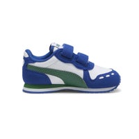 控えめなランニングシルエット、合成レザーのアッパーとシュータンに合成スウェードオーバーレイ、メッシュ裏地、EVAミッドソール、ノンマーキングラバーアウトソール、クイッククロージャーで着脱が簡単、外側のサイドにプーマNo.2ロゴ、外側サイドにプーマフォームストリップ、シュータンにプーマNo.1ロゴ、0歳から4歳におすすめ
