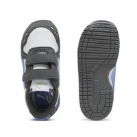控えめなランニングシルエット、合成レザーのアッパーとシュータンに合成スウェードオーバーレイ、メッシュ裏地、EVAミッドソール、ノンマーキングラバーアウトソール、クイッククロージャーで着脱が簡単、外側のサイドにプーマNo.2ロゴ、外側サイドにプーマフォームストリップ、シュータンにプーマNo.1ロゴ、0歳から4歳におすすめ