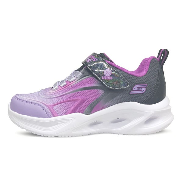 コメント:遊び場を楽しくカラフルにライトアップする、Skechers S-Lights(スケッチャーズ Sライツ): ソラ グロー - カラー ブリーズ。スケッチャーズのアダプティブクロージャーデザインのスニーカー。エンボス加工のディテールを施したオンブレメッシュと合成素材のアッパー、調節可能なインステップストラップ、固定式ストレッチレース、クッション性に優れたライトアップミッドソールが特長です。